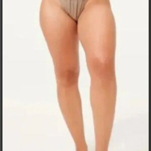 Good American 2 Medium Shine Ruched Bikini Bottom Swim Bottom Mink Taupe NWT