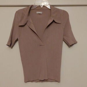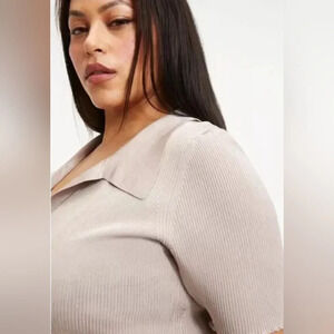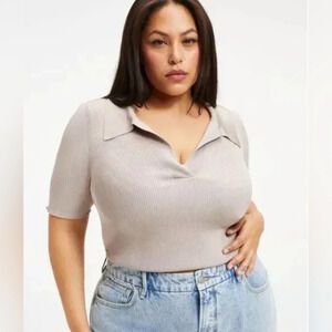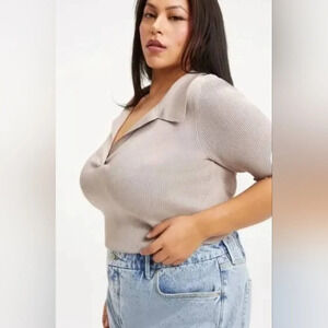 Good American 4 Ribbed knit Collared blouse Scalloped hem Classic Luxury XL