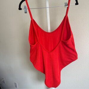 Good American 4XL Red Textured V-Neck 1 Piece Swimsuit High Cut Cheeky Plus Size