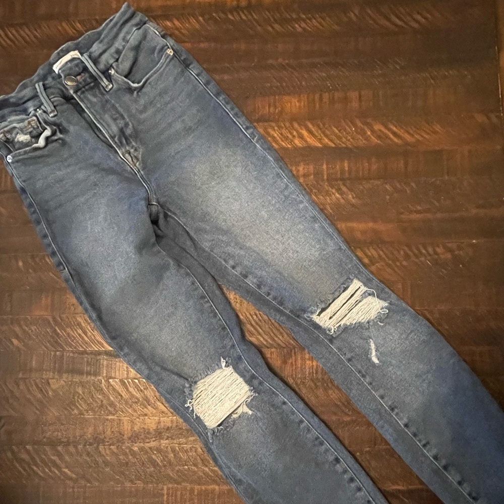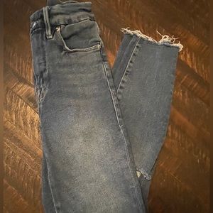 Like new. Only wore a few times. Distressed knees and frayed hem
