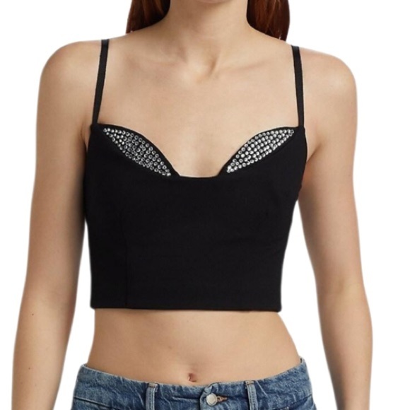 Black Crop Top With Rhinestone Detail