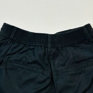 Elevate your casual wardrobe with these Good American drapery trouser shorts in classic black. The high-rise, pleated front design creates a flattering silhouette that is perfect for travel or walking activities. The cotton blend material is machine washable and features a button closure with belt loops for added convenience.