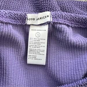 A sleek cover-up option, this Good American miniskirt is crafted from crinkly fabric and imbued with a verdant shade of purple.
