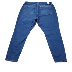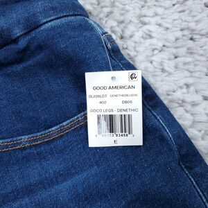 Good American x Calik Denim Always Fits Good Legs Denethic distressed Ankle Skinny jeans in dark wash blue "DenethicBlue05". New with tags. Style number gl226ldt. Tagged a size 28-32 - please see good american always fits size chart in photos for details. Real measurements shown in photos with jeans laid flat: