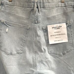 Good American Always Fits Good Legs Flare Distressed Lt Blue Wash Size 14-18 NWT