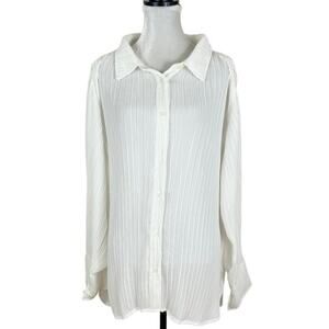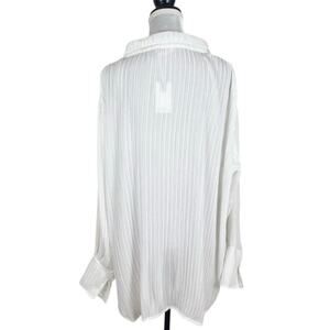 Good American Always Fits Plisse Button Down Shirt in White Size 5/6 1XL 2XL NWT