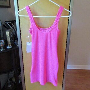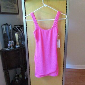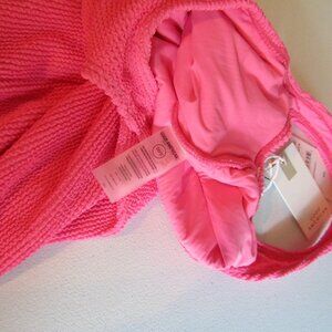 Crinkly knit fabric lends trendy texture to this beach-ready cover-up mini dress. Lined Bright pink Pull over Size 00/0