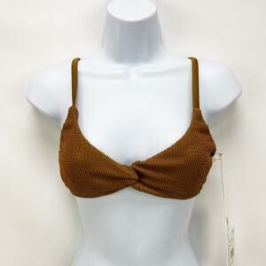 Good American Always Fits Twisted Bikini Top Size 3 L Swim Bronze Brown NWT