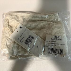 Good American Always Fits Crinkle One Shoulder Bikini Top in Ivory Size 3/4 L/XL