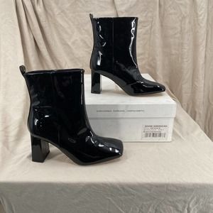 Good American Ankle Boot Women's 7 Black Patent Leather Square Toe Square Heel