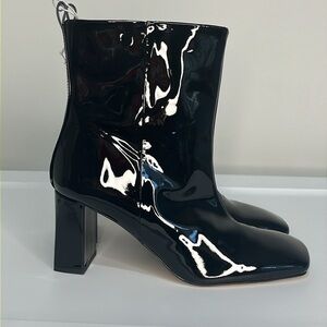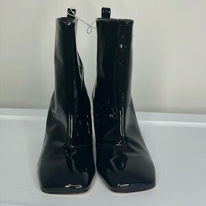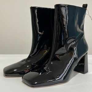 Good American Ankle Boot Women's 8.5 Black Patent Leather Square Toe Square Heel