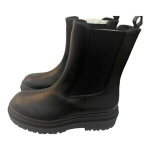 Good American Ankle Chelsea Boots Combat Lug Sole Pull On Leather Black Size 14
