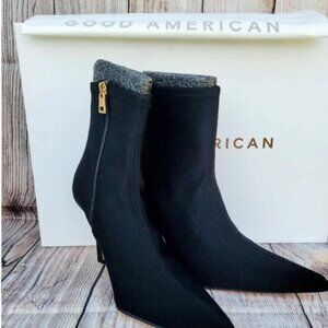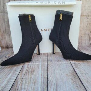 Good American Ankle Shine Neoprene Booties Black 12 NEW NIB