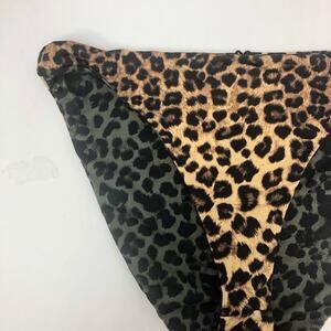 Good American Basic Reversible Bikini Bottoms Sz 3 Large Tan Sage Leopard NWT