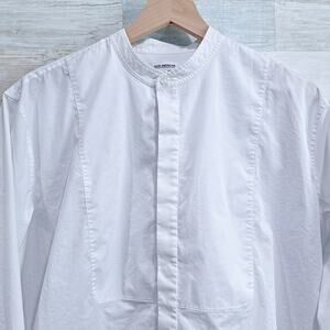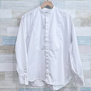 Good American Bib Front Mandarin Collar Dress Shirt White Cotton Work Womens 4