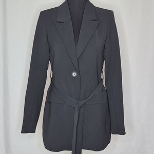 Good American Black Button-Front Trench Style Belted Blazer - Size 0/XS