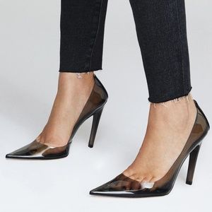 Sleek black heels with a pointed toe. Transparent sides for a modern look. Perfect for any occasion.