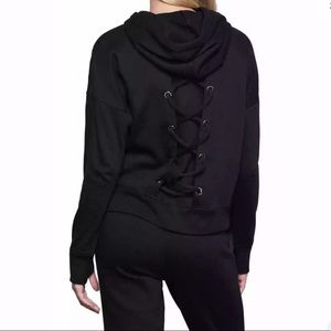 Lace-up details update an irresistible hoodie cut from a super-cozy cotton blend designed for hitting the gym or running errands.