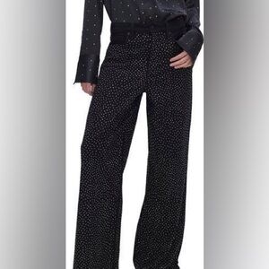 Stylish black jeans adorned with silver studs. Perfect for a bold look. 35 inseam