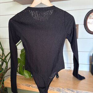 Chic and confident 🖤 Good American Black Lace Bodysuit, Size Small — perfect for a night out or layering under your favorite pieces. $15