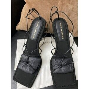 Good American Black Strappy Neoprene Ultra High Heel Womens Size 8.5 NIB