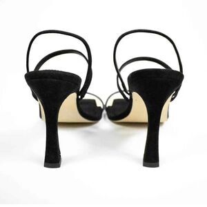 Good American Black Suede Strappy Slingback High Heels Square Toe