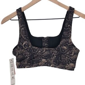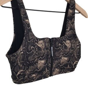Good American Black Tan Snake Print Stretch Zip Up Sports Bra Medium 2