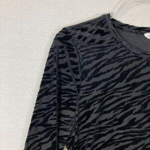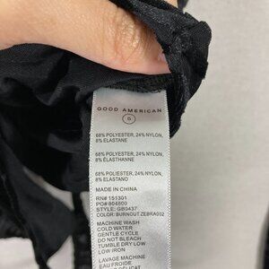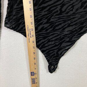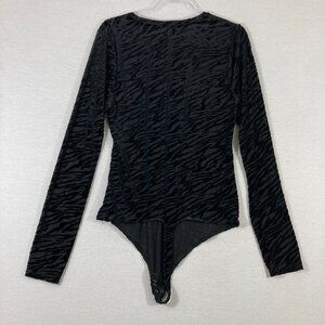 Good American Black Velvet Burnt Out Zebra Print Long Sleeve Bodysuit size 5/2XL
