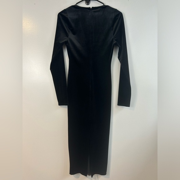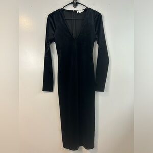 Good American Black Velvet Long Sleeve Deep V Midi Bodycon Dress Sz 0 XS