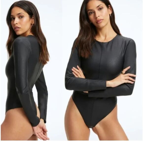Good American Black latex bodysuit