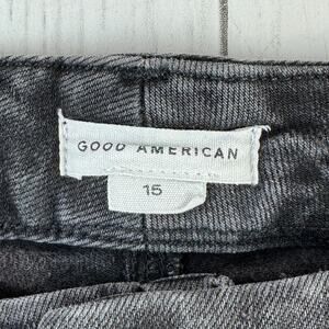 Good American Black271 Classic Slim-Straight Raw Step-Hem Jeans Plus Size 15
