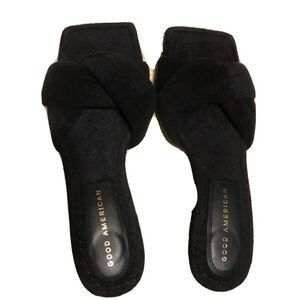 Good American Black Terry Slip On Square Toe Kickstand Heel NEW