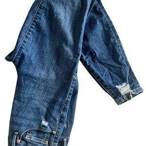 Like New Good American distressed jeans. Size 6 (28) Medium wash with chewed hems.