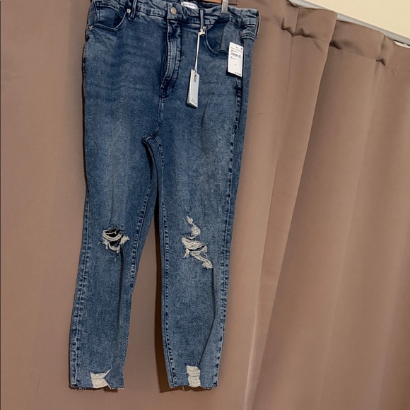 Brand new with tags Good American size 20 indigo blue ankle jeans with distressed details on pockets, knees and raw hemline. Perfect for casual wear.
