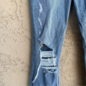 Good American Blue Light Wash Distressed Flare Denim Jeans Women's Size 4