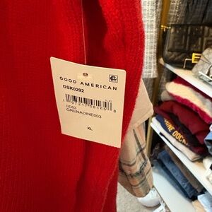 GOOD AMERICAN RED CREW SWEATER SIZE XL NEW WITH TAGS retail $169 red crew neck sweater. Perfect for adding a bold touch to your outfit. Soft and comfortable fabric.