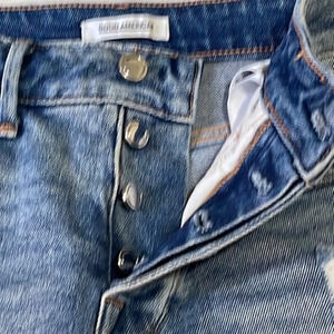 Good American Bombshell Distressed Cutoff Denim Shorts