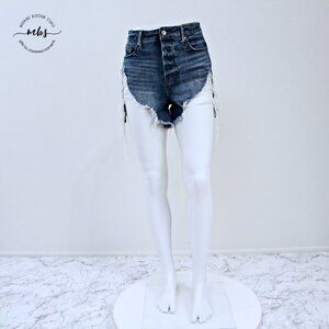 Good American Bombshell High Waist Distressed Denim Jean Shorts Blue Women 2