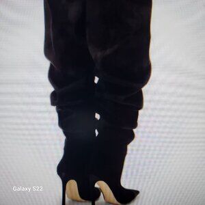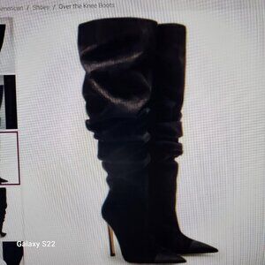 Good American Boots Womens Size 6. NIB. Over the Knee Slouch Suede Black Goth RockerCore. NIB. Size 6. No rips/stains/scuffs or tears. Suede leather/material moves with touch. These are brand new, still in the plastic, only took out one boot for pics. Box has some damage, boots are perfect. Smoke free home. No odors. All offers are welcome. So saucy!