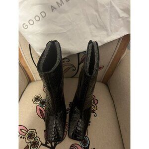 Good American Boots Womens Size 7 Black Square Toe Croc Embossed Ankle NEW