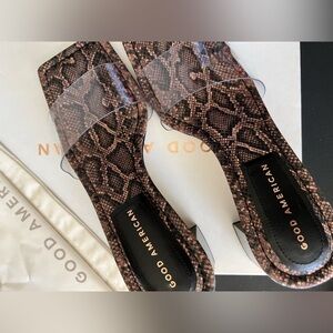 Good American Brown Snake Print Sandals