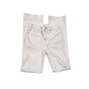 Good American Button Fly Waist Cinched White Flared Leg Bell Bottom Jeans Size 2