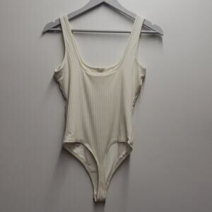 Good American Button Front Bodysuit in Ivory 002 Women's Size 2.