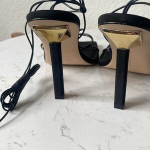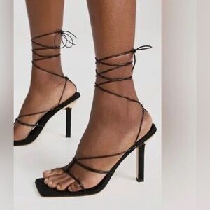 Good American Cage Slanted Sandals Neoprene Black Lace Up Heel