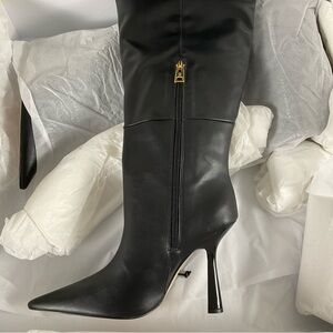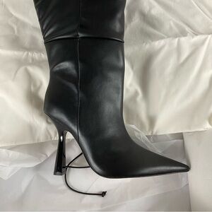 Good American “Carla” Over The Knee Black Boots Ultra High Spool Heel Sz 10