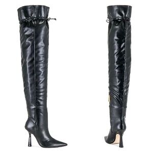 Good American “Carla” Over The Knee Black Boots Ultra High Spool Heel Sz 8