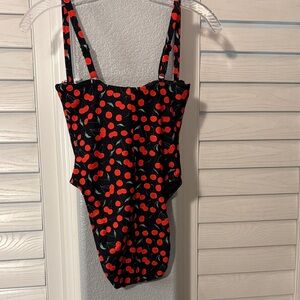 Chic swimsuit with cherry pattern & adjustable straps. Bold and playful design. Does run small.