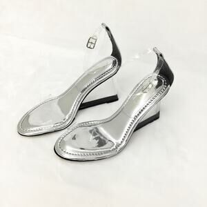 Good American Cinder-F*cking Rella Wedge Silver Sz 9