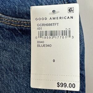 Good American Classic Raw Hem High Rise Jeans Skinnyish Fit Blue940 0/25 NWT