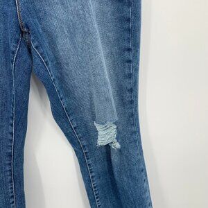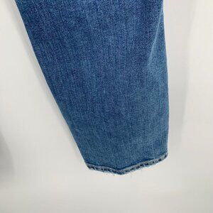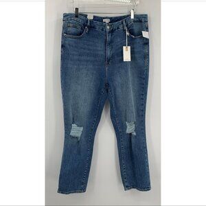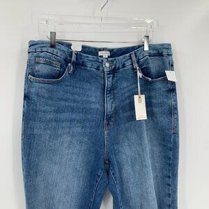 Good American Classic high rise ankle jeans distressed knee frayed hem new 18